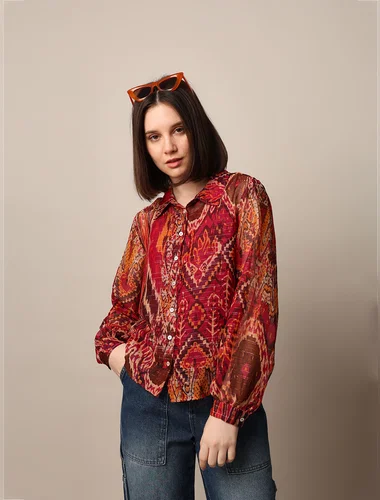 BLACK EMBROIDERED CO-ORD SHIRT MAROON PRINTED CHIFFON SHIRT PINK SATIN SHIRT BEIGE PRINTED SHIRT BLACK SHIMER PRINTED SHIRT BLUE FRILL DENIM SHIRT BLACK ZIP DETAIL SHIRT WHITE EMBROIDERED SHIRT BLACK EMBROIDERED DETAIL SHIRT WHITE CORSET SHIRT OFF WHITE PRINTED SHIRT WHITE TEXTURED SHIRT BLACK TEXTURED SHIRT WHITE FLORAL PRINT SATIN SHIRT WHITE FLORAL PRINTED SHIRT CREAM TEXTURED WEAVE SHIRT BEIGE PRINTED VISCOSE SHIRT BEIGE PULL-SLEEVES CO-ORD SET SHIRT